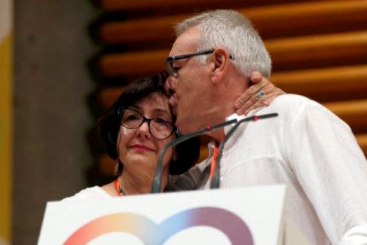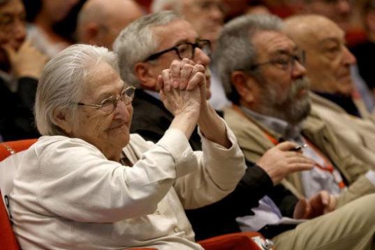 Además, ha tenido palabras para el líder del PCE, José Luis Centella, o la mujer de Marcelino Camacho, Josefina Samper. Pero también ha dejado espacio para su vida personal y ha agradecido el apoyo a su mujer. "Gracias por compartir los valores, por ser roja, atea y republicana y por ser la madre de mis hijos", ha dicho antes de fundirse ambos en un emotivo abrazo en el escenario.