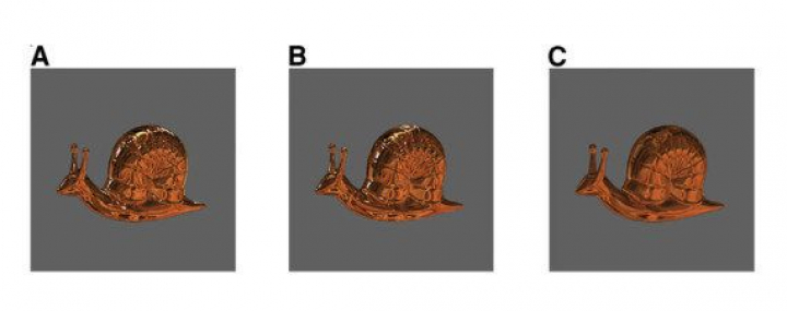 Para cualquier adulto es evidente que las dos primeras figuras son brillantes, mientras que la tercera es mate. Y de hecho, los bebés de 7-8 meses se fijaron más en la tercera imagen. En cambio, el resultado fue muy diferente para los de 3-4 meses, que prestaron más atención a la segunda figura. Para ellos, el cambio estaba allí. Y de hecho, lo está: según los autores del estudio, publicado en la revista Current Biology, las imágenes A y B representan distintas condiciones de iluminación, y el patrón reflejado es diferente en cada una. Los investigadores aseguran que, píxel a píxel, A y B son mucho más distintas entre sí que B y C.