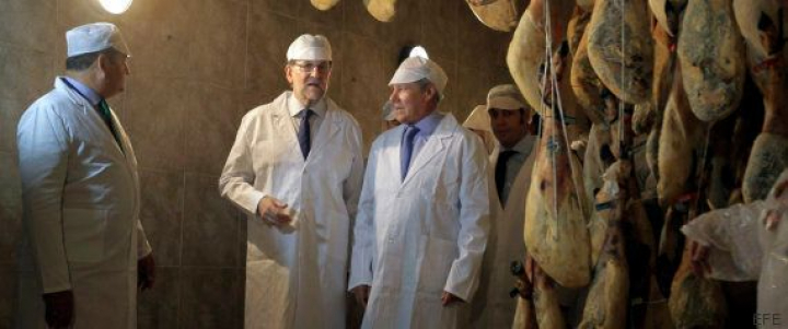 ¿Qué tendrá el jamón que vuelve loco a Mariano Rajoy? El presidente del Gobierno en funciones ha visitado dos fábricas de productos cárnicos en menos de una semana y se ha fotografiado orgulloso junto a esas delicias.