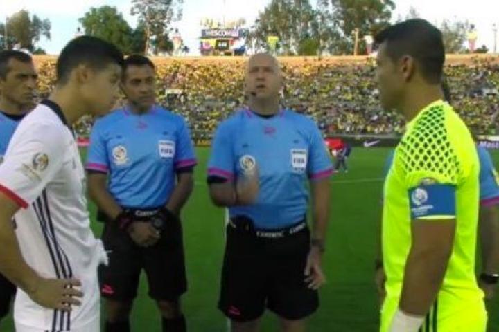 El árbitro Heber Lopes logró lo que parece casi imposible, que al lanzar la moneda durante el sorteo de campos, ésta cayera de canto.