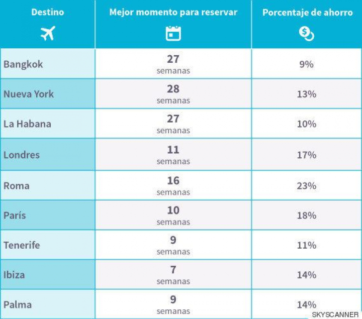 En cuanto a los destinos españoles, europeos y de larga distancia más populares, éstos serían los momentos óptimos para conseguir el máximo ahorro: