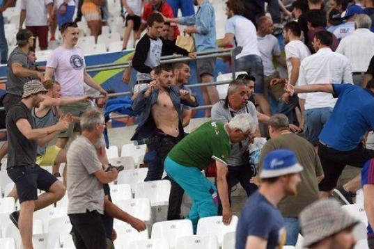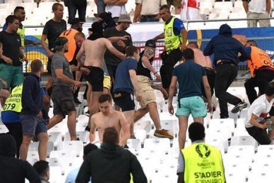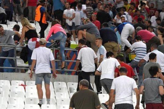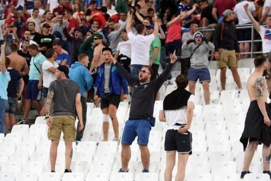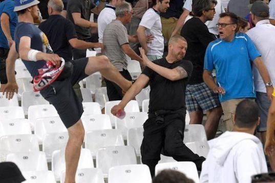 Los aficionados ingleses y rusos no quedaron satisfechos con pelearse antes del encuentro sino que además siguieron enfrentándose durante el propio partido. Los altercados que ayer se produjeron en Marsella por enfrentamientos entre hinchas ingleses y rusos dejaron 35 personas hospitalizadas, entre las cuales un hombre se debate hoy entre la vida y la muerte y otros tres estaban en estado grave. Las cifras las dio el prefecto de policía de Marsella, Laurent Núñez, que en una entrevista a la emisora France Info indicó que las fuerzas del orden realizaron ocho detenciones.