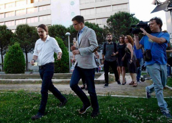 Pablo Iglesias, candidato de Unidos Podemos, ha llegado a la Academia de Televisión acompañado por su número dos, Íñigo Errejón, con quien también acudió al debate que se celebró el pasado 7 de diciembre.