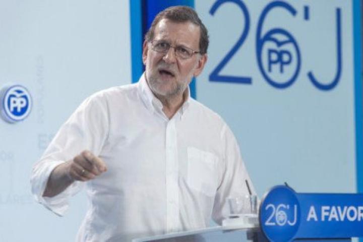 En la imagen aparece el presidente del Gobierno en funciones, Mariano Rajoy, junto al lema de campaña, "A favor", pero traducido al euskera: "Alde".