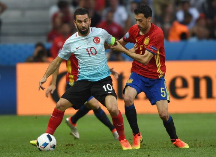 Turquía no ha podido vestir en su partido frente a España su camiseta habitual, de color rojo. Ejercía como equipo visitante, así que ha tenido que jugar con su segunda equipación: pantalones negros y camiseta celeste.