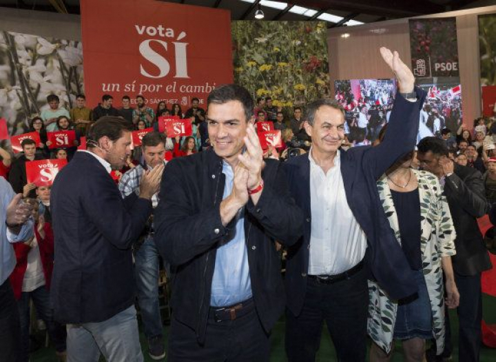 José Luis Rodríguez Zapatero, junto a Pedro Sánchez en el mitin que ambos han dado en Valladolid.