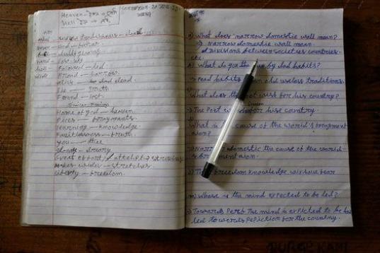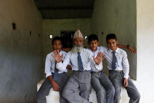 Según el relato que de su historia hace The Wider Image, de la agencia Reuters, este hombre aprendió a leer y a escribir pero, con 11 años, tuvo que dejar los cuadernos y ayudar en el campo. Ahora, padre de seis hijos, abuelo de ocho nietos y viudo, ha decidido volver a clase, porque le ayuda a "olvidar sus penas", como la soledad tras la muerte de su esposa.