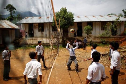 Gracias a los docentes tiene el dinero básico para pagarse el uniforme, pero no tiene ayuda para comida, así que pasa el día con el gundruk que come a primera hora, una especie de espinacas fermentadas. Aprende como los demás, aunque sea mayor que el propio profesor y sus compañeros se lleguen al hombro, y en los recreos juega con los niños al voleibol, como uno más.