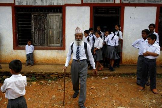 Un hombre de 68 años regresa a la escuela en Nepal tras abandonarla de niño para trabajar (FOTOGALERÍA)
