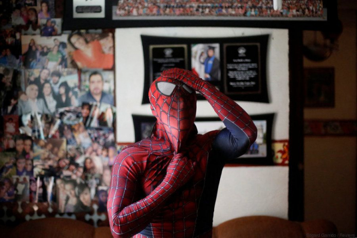 Moisés Vázquez, de 26 años, explica que decidió ponerse el traje rojo y azul del conocido superhéroe al leer en los cómics que el personaje de Marvel que se esconde detrás de la máscara, Peter Parker, trabajó como profesor de ciencias después de ser fotógrafo freelance.