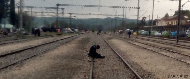 "La desesperación absoluta. En las vías del tren antes de llegar a la frontera con Macedonia", explica Ruiz.