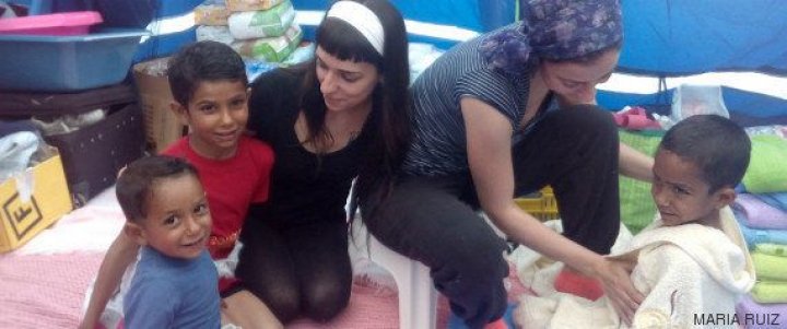 María Ruiz y Marta, una voluntaria catalana, atienden a tres hermanos. "Se fueron más que felices por el baño, la ropa limpita y la dosis de cuidados, cariño y amor que recibieron", asegura la psicóloga.