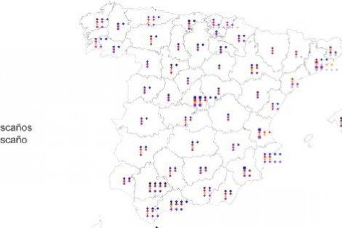 Es conveniente recordar que hay provincias en las que la distribución de escaños más probable tiene una pequeña probabilidad. Este es el resultado por provincias: