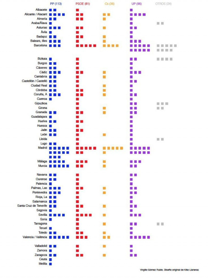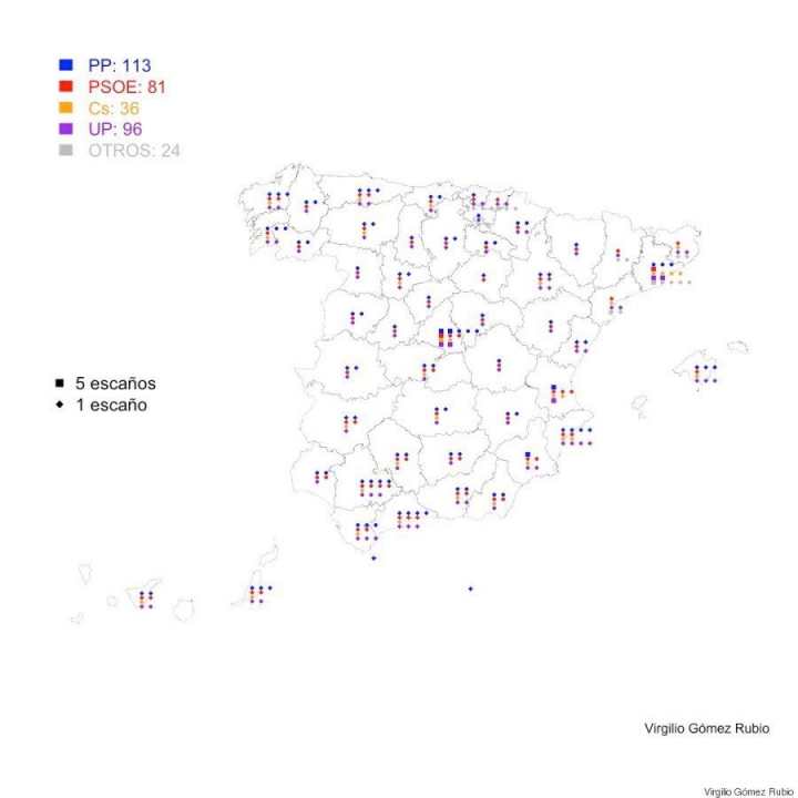 El matemático Virgilio Gómez Rubio, que trabaja en el Departamento de Matemáticas de la Universidad de Castilla-La Mancha, en el campus de Albacete, ha utilizado sus conocimientos para hacer una predicción de la distribución de escaños por provincias para las próximas elecciones generales que tendrán lugar este domingo. Gómez realiza estos trabajos en "su tiempo libre" y aclara a El Huffington Post que "puede haber variabilidad".