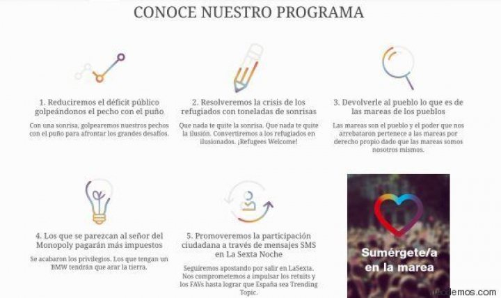 De hecho, este mismo martes han publicado una dedicada a Unidos Podemos (iupodemos.com), donde bromean sobre el constante uso de las sonrisas que hace esta formación: