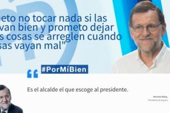 En rajoypresidente.es se ironiza sobre las frases 'célebres' que ha dejado al presidente en funciones durante su trayectoria política, como aquella en la que hablaba del "vecino que elige al alcalde" o la de "los españoles mucho españoles".