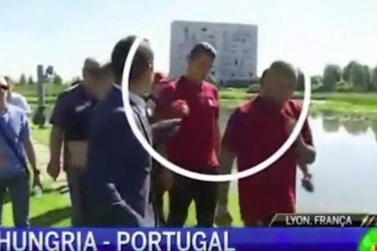 El capitán de la selección portuguesa, Cristiano Ronaldo, vuelve a ser hoy objeto de polémica en Portugal por su comportamiento, después de que esta mañana tirase a un lago el micrófono de un periodista luso.
