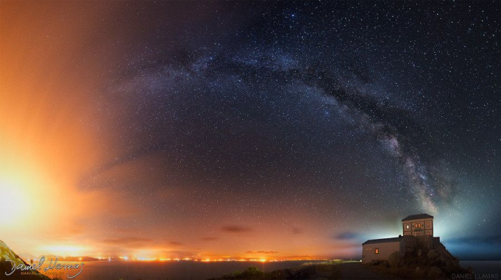 La afición por la fotografía nocturna llevó a Daniel Llamas el pasado 11 de julio de 2015 hasta el Faro de Finisterre (A Coruña). Allí tomó esta impresionante imagen de la Vía Láctea, que casi un año después acaba de ser reconocida con la mención de honor en la categoría Against the Lights del famoso concurso de astrofísica The 2016 International Earth & Sky Photo Contest del The World at Night (TWAN), fallado el pasado fin de semana.