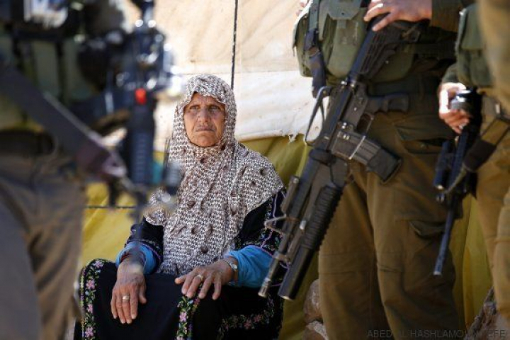 Una anciana palestina, rodeada de militares de Israel tras la demolición de su casa en Yatta, cerca de Hebrón.