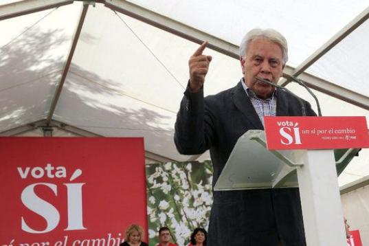 “Soy un viejo socialdemócrata con una cabeza joven que se preocupa por los problemas”. Aplausos. Los militantes socialistas han tenido que esperar hasta el último día de campaña para oír a Felipe González. Cuando suena su voz, el PSOE calla y escucha hasta las pausas de su silencio.