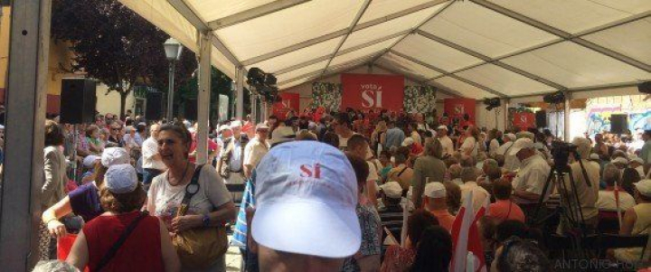 Pero él no da puntada sin hilo. Tocaba enlazar con la campaña española. Un discurso interrumpido en varias ocasiones por gritos de “Si, sí, el cambio ya está aquí” o “Ista, ista, ista, España es socialista”. Turno para cargar contra Podemos y dejar claro que no se puede tener de “socios” a quienes quieren asumir el riesgo de “trocear y debilitar España”. Con esa mezcla firme, socarrona, irónica, con maneras andaluzas. Para delicia del público ha dejado la siguiente frase: “Inmensa alegría de dar la bienvenida a la socialdemocracia al señor Anguita”.