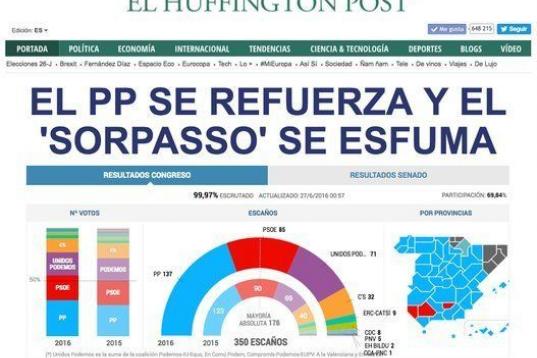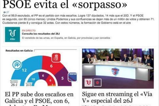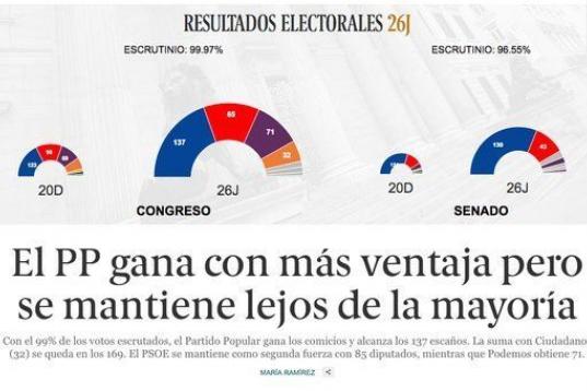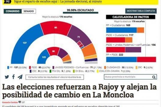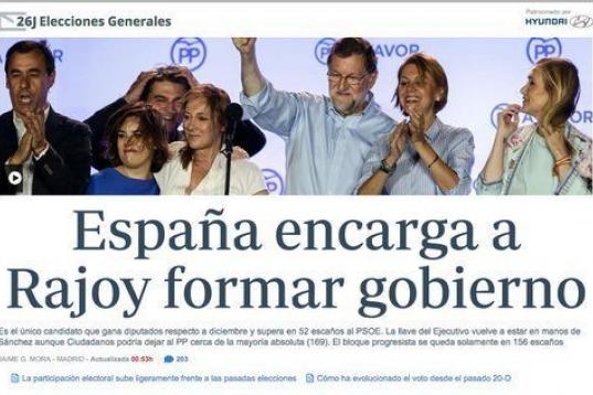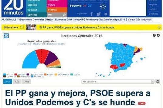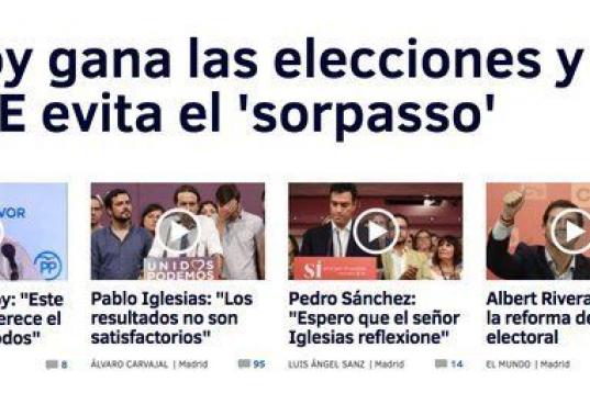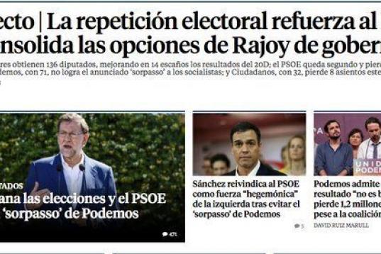 El resultado de las elecciones es la noticia principal de los diarios digitales, que en su mayoría destacan que los nuevos comicios han reforzado al PP y a la figura de Mariano Rajoy.