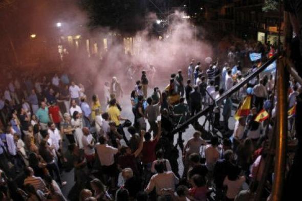 Los incidentes, ocurridos en la confluencia de las calles de Génova y Argensola, provocaron carreras y algunas caídas entre los militantes y seguidores del PP, cuando Mariano Rajoy se dirigía a ellos desde el balcón de la sede del partido, para agradecerles su apoyo y felicitarles por la victoria en las elecciones. Los alborotadores, según la policía, arrojaron entre el público "botes bengala", que no son tóxicos pero cuya explosión produce alarma y puede provocar una estampida.