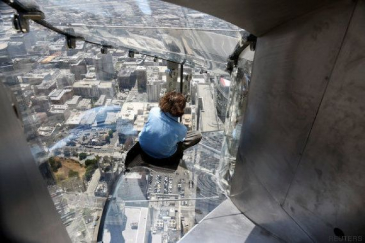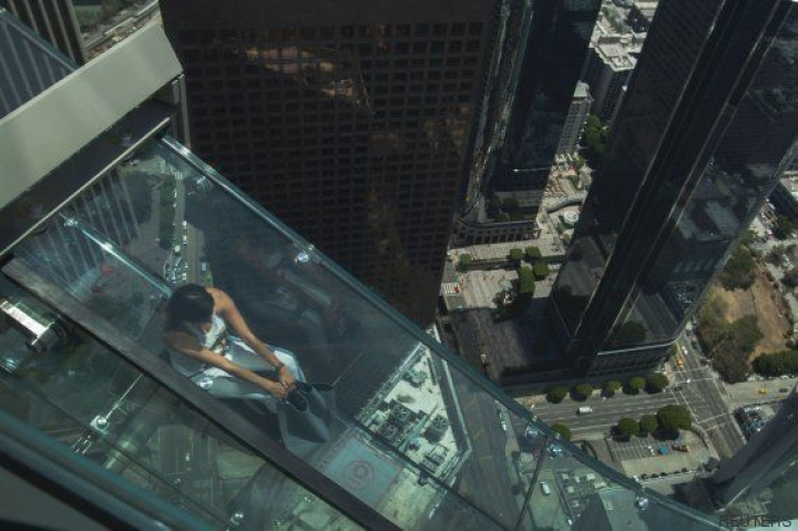 El tobogán está pegado a un lateral del US Bank Tower, un edificio de 70 pisos famoso por ser el más alto de la costa oeste. La rampa, que conecta la planta 70 con la 69, tiene casi 14 metros de largo, 1,2 metros de ancho y está hecho con cristal de algo más de una pulgada de grosor. Es tan fuerte que se podrían "colgar dos ballenas azules de él y no se movería", aseguró John Gamboa, vicepresidente de OUE Americas, a CNN.