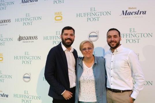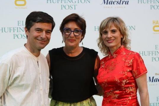 Montserrat Domínguez entre José Luis Moro y Pablo Torreblanca, de la agencia de publicidad Pingüino y Torreblanca, creadores de las campañas de 'El Huffington Post'