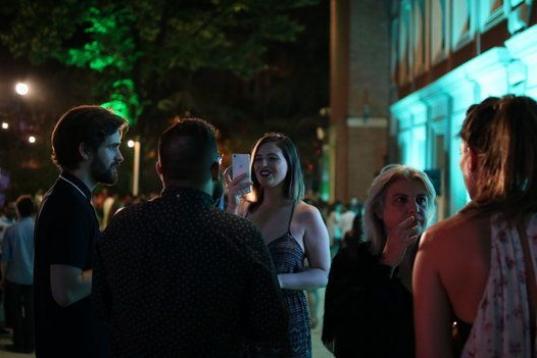 Los invitados posan en el 'photocall' a la entrada del Jardín Florido del Museo Lázaro-Galdiano