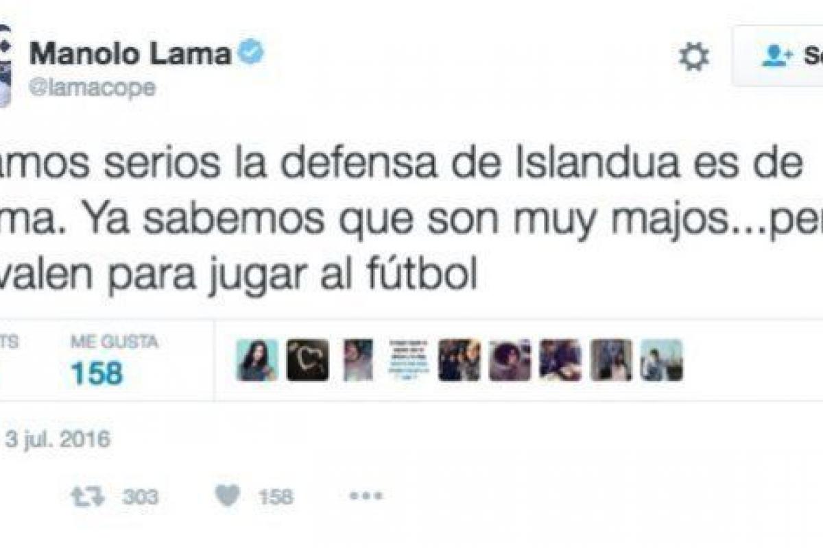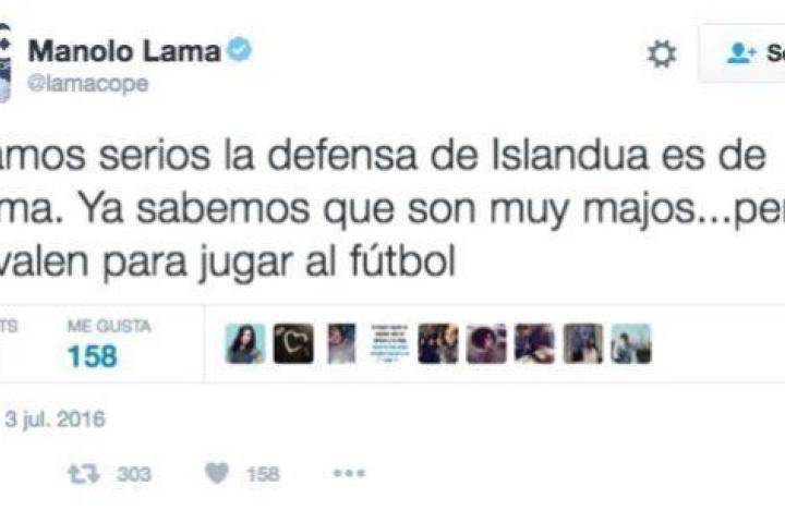 Sin embargo, el periodista de la Cope y Cuatro Manolo Lama ha restado méritos a los islandeses con dos duros tuits...