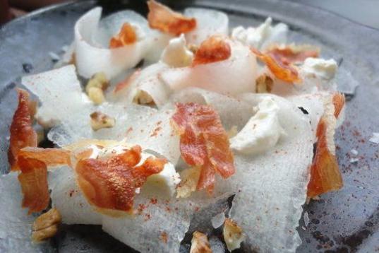 Esta receta incorpora unas láminas de mojama de atún, pero también vale jamón o incluso pistachos. Los pasos para elaborar este plato son éstos.