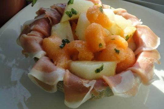 Necesitarás dos variedades de melón, albahaca fresca, jamón y aceite de oliva virgen extra. La autora de esta receta asegura que en diez minutos está lista.