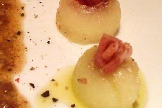 Ésta es otra manera de sacar partido a esta combinación de sabores. El plato va acompañado con una vinagreta de jerez y piñones. Aquí puedes leer la receta completa.