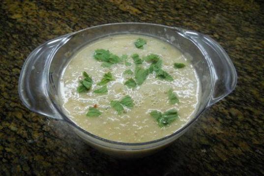 Esta crema tan fresquita concentra mucho contraste de sabores, ya que lleva yogur, pimiento verde, cebolleta, ajo y hierbabuena. La receta completa la tienes aquí.