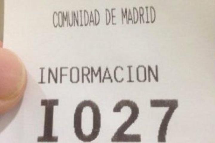 "Mi puerta giratoria", ha publicado en su cuenta personal de Twitter acompañando una fotografía del 'papelito' con su número de turno de espera para darse de alta en el paro en una oficina de la Comunidad de Madrid.