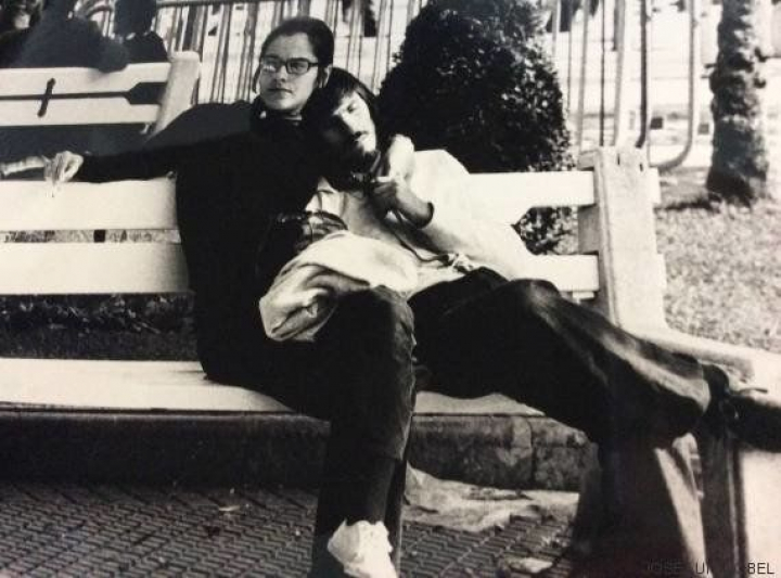 ¿Woodstock allá por el final de los 60 o principios de los años 70? Pues no. Años 80, San Fermín, en Pamplona por la mañana, quizá después del encierro. Nobel recorría las calles del casco viejo sin parar, sabiendo que entre los muchos jóvenes venidos de media Europa y de EEUU, era casi obligado recuperar la estética de los festivales de los sesenta. La flauta, la melena, el vaquero con una vuelta a ras de tobillo y el chaleco sobre camisa blanca rodean al desconocido durmiente, puede que el único que haya corrido el encierro.