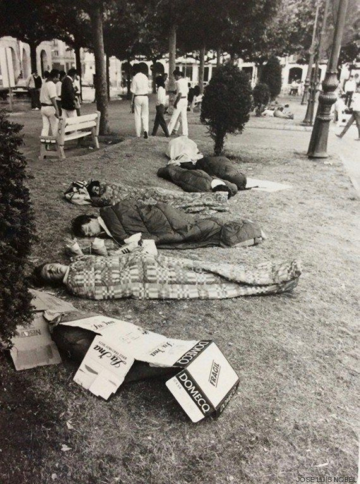 Los parques de alrededor de la plaza del Castillo, de la Recoleta o las orillas del Arga —hoy en día convertidas en maravilloso paseo para acoger a todo aquel que no tenga problemas en subir o bajar la cuesta de Santo Domingo— sirven desde hace décadas para pernoctar. Encontraréis antes la manta y el saco que envuelven a los asiáticos —¿o son lationamericanos?— que la caja de Domecq para arroparos de madrugada.