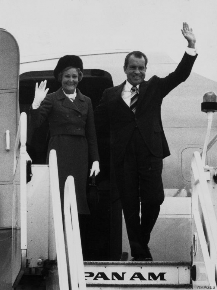 Nixon y su mujer Pat bajan del Air Force One en 1970