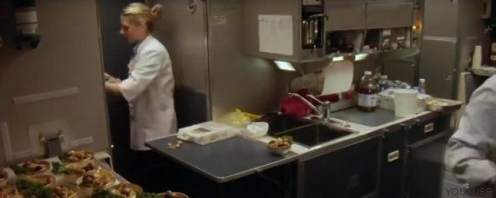 También consta de dos cocinas, abiertas las 24 horas, pero no del estilo de las de los aviones comerciales, que son minúsculas, sino que estas tienen capacidad como para alimentar a 100 personas. En ellas trabaja un equipo de cinco chefs que cuentan a bordo con alimentos frescos para preparar la comida. Tienen toda clase de facilidades pareciéndose más a las de un restaurante que a las de un avión. Christine, antigua empleada de los servicios de inteligencia que se unió a la Fuerza Aérea, ahora es la chef principal. Para hacerse una idea de los platos que se sirven en los vuelos, el periodista de la BBC Jon Sopel entonces explicó que cenó filet mignon, ensalada de lechuga romana y pastel de queso.
