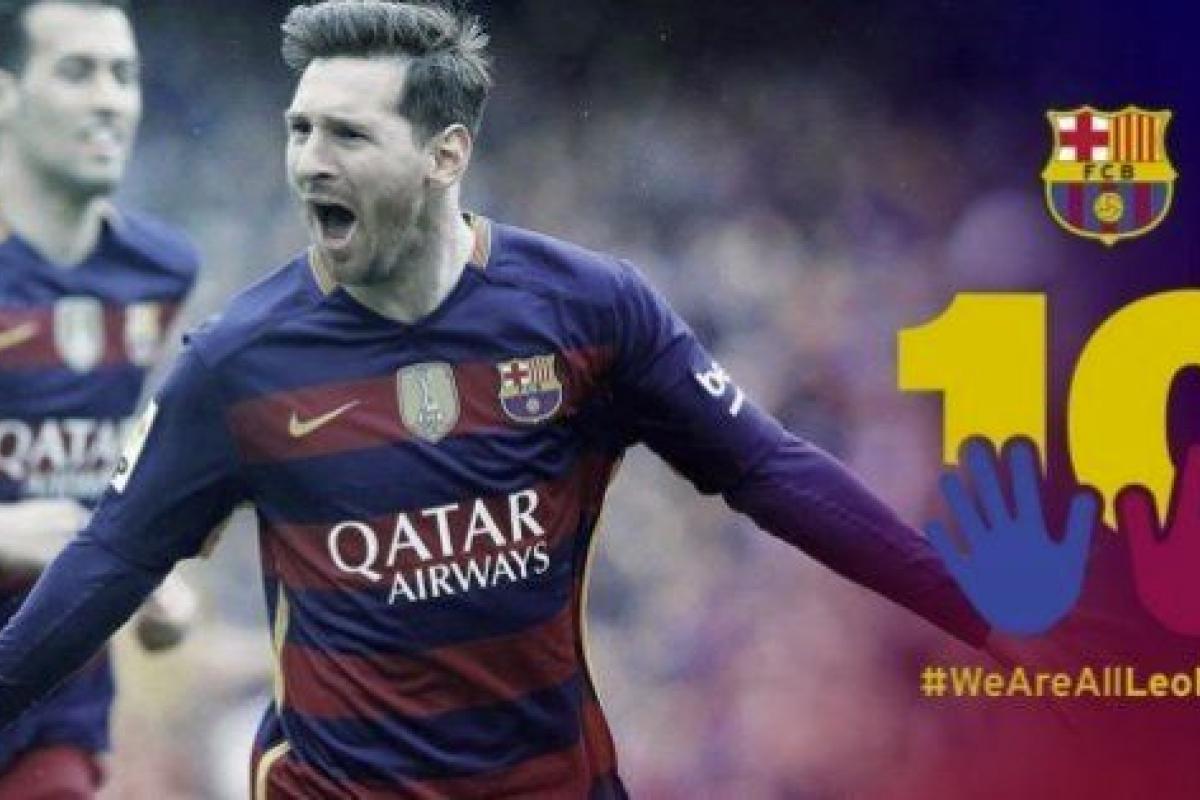 El Barcelona sigue empeñado en defender al argentino Leo Messi, condenado a 21 meses de cárcel por fraude fiscal. El club de fútbol lanzó este sábado una polémica campaña en Twitter con la etiqueta #TodosSomosLeoMessi. El hashtag se ha convertido trending topic enseguida.