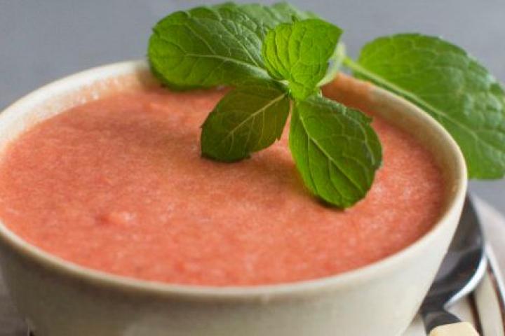Esta sopa dulce y fresca puede acompañarse de mojama, jamón, trucha ahumada o si eres vegetariano, de pistachos. Puedes leer la receta completa aquí.