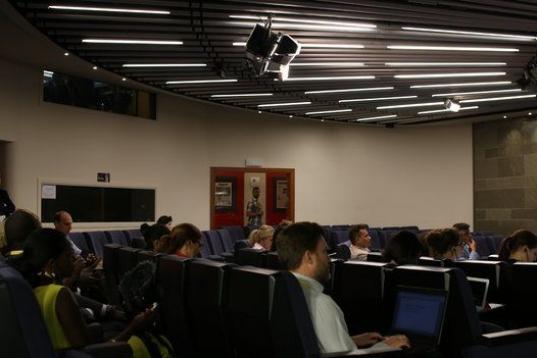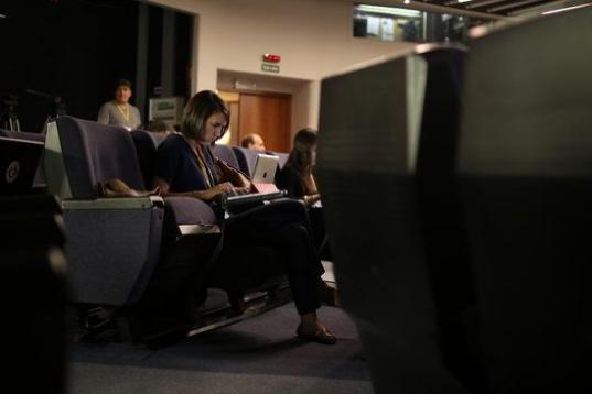 Frente a la veintena de reporteros que se han instalado en la sala de prensa, 15 han podido acceder a la reunión.