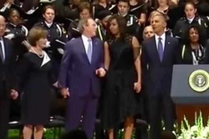 Sí, este es Bush en los funerales de Dallas... BAILANDO