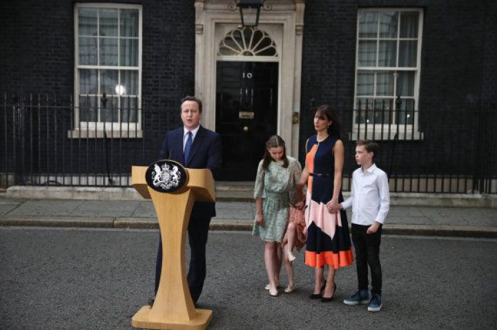 Acompañado por su esposa, Samantha, y sus tres hijos -Nancy, Florence y Arthur-, Cameron señaló que la nueva primera ministra aportará el liderazgo "fuerte" y "estable" que el país necesita.