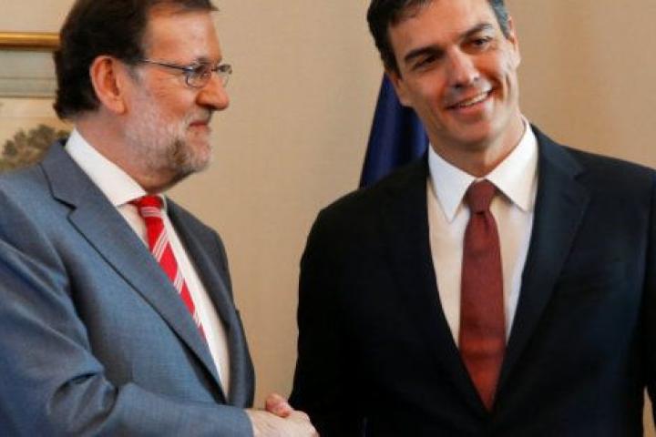 Esta imagen dista mucho de la que ofrecieron hace cinco meses, cuando Rajoy esquivó la mano del líder de los socialistas, entre gestos de evidente frialdad. Esa ocasión, posaron de pie, con gesto muy serio y en ningún momento se estrecharon las manos, pese a que Sánchez hizo el gesto de tendérsela.
