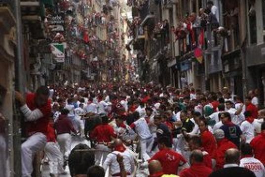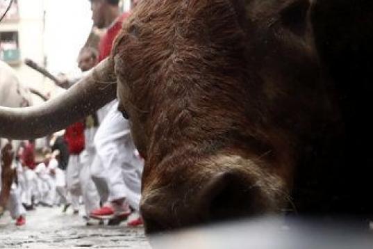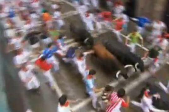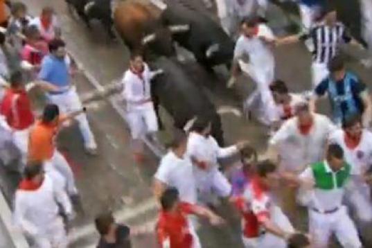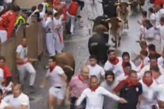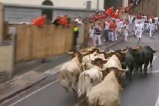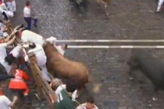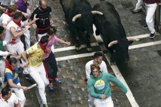 Los toros de Núñez del Cuvillo, ausentes en Pamplona desde 2011, han ofrecido esta mañana un encierro rápido y emocionante con un sólo herido, de momento, por asta de toro.