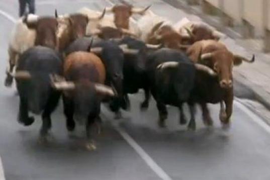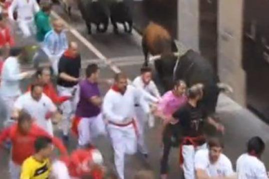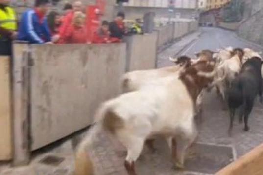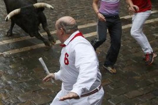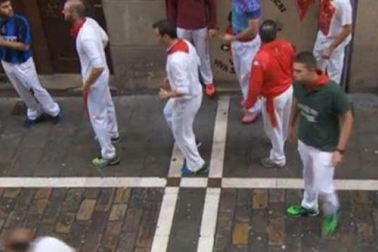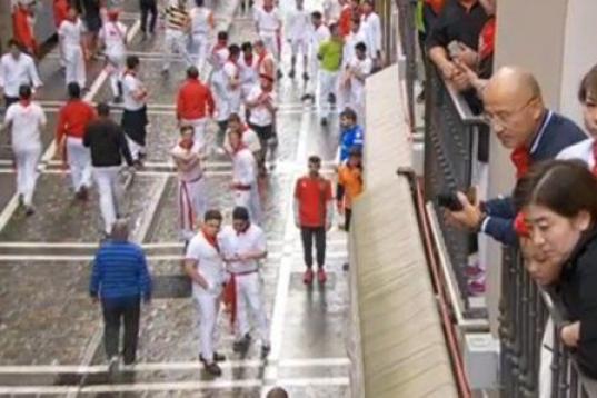 La carrera, que ha durado dos minutos y medio, ha tenido menos corredores que otros días posiblemente por la lluvia que ha caído sobre la ciudad hasta una hora antes del encierro.