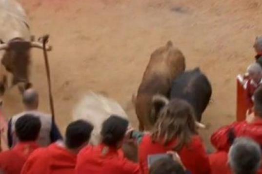 Los servicios sanitarios han informado de que, hasta el momento, sólo hay un mozo herido por asta, en la pierna izquierda, suceso que se ha producido en la plaza del Ayuntamiento cuando un toro colorado ha embestido hacia los mozos que estaban a la derecha del vallado, cayendo al suelo varios de ellos e hiriendo a uno.
