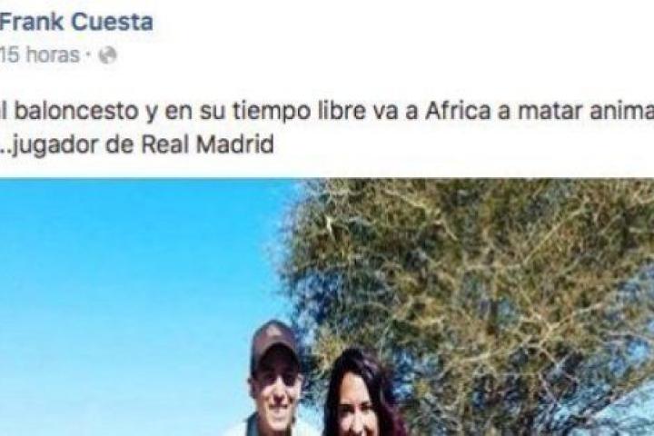 El popular presentador Frank Cuesta ha incendiado las redes sociales al compartir una imagen del jugador del Real Madrid de baloncesto, Jaycee Carroll, posando junto a una cebra muerta y un rifle.